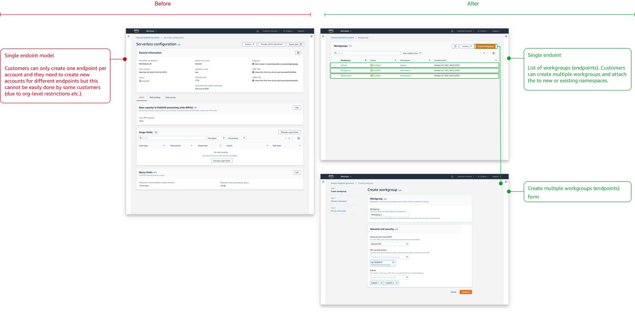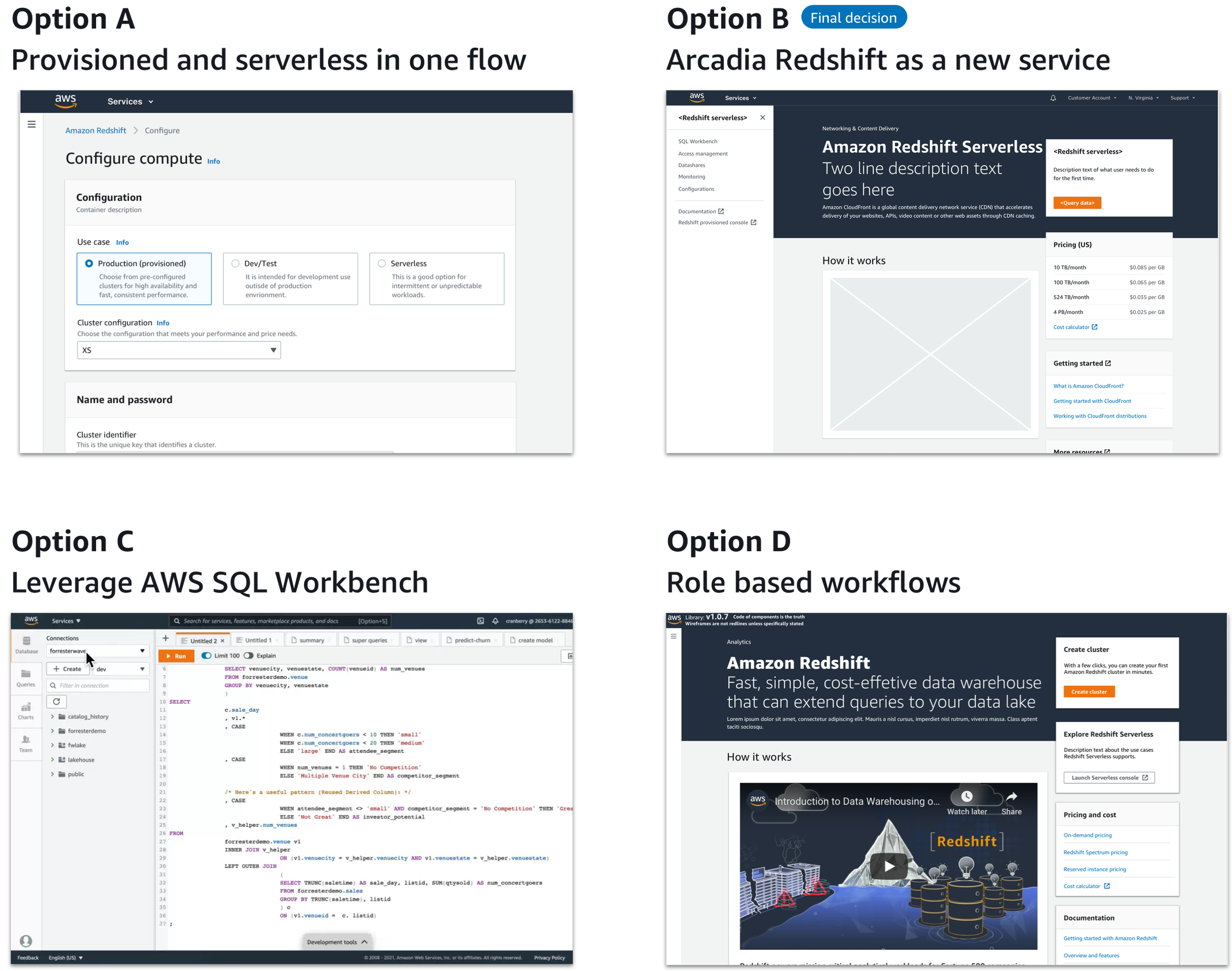 Led end-to-end product design for Amazon Redshift Serverless as one of two designers in a 47+ person cross-functional Agile team.