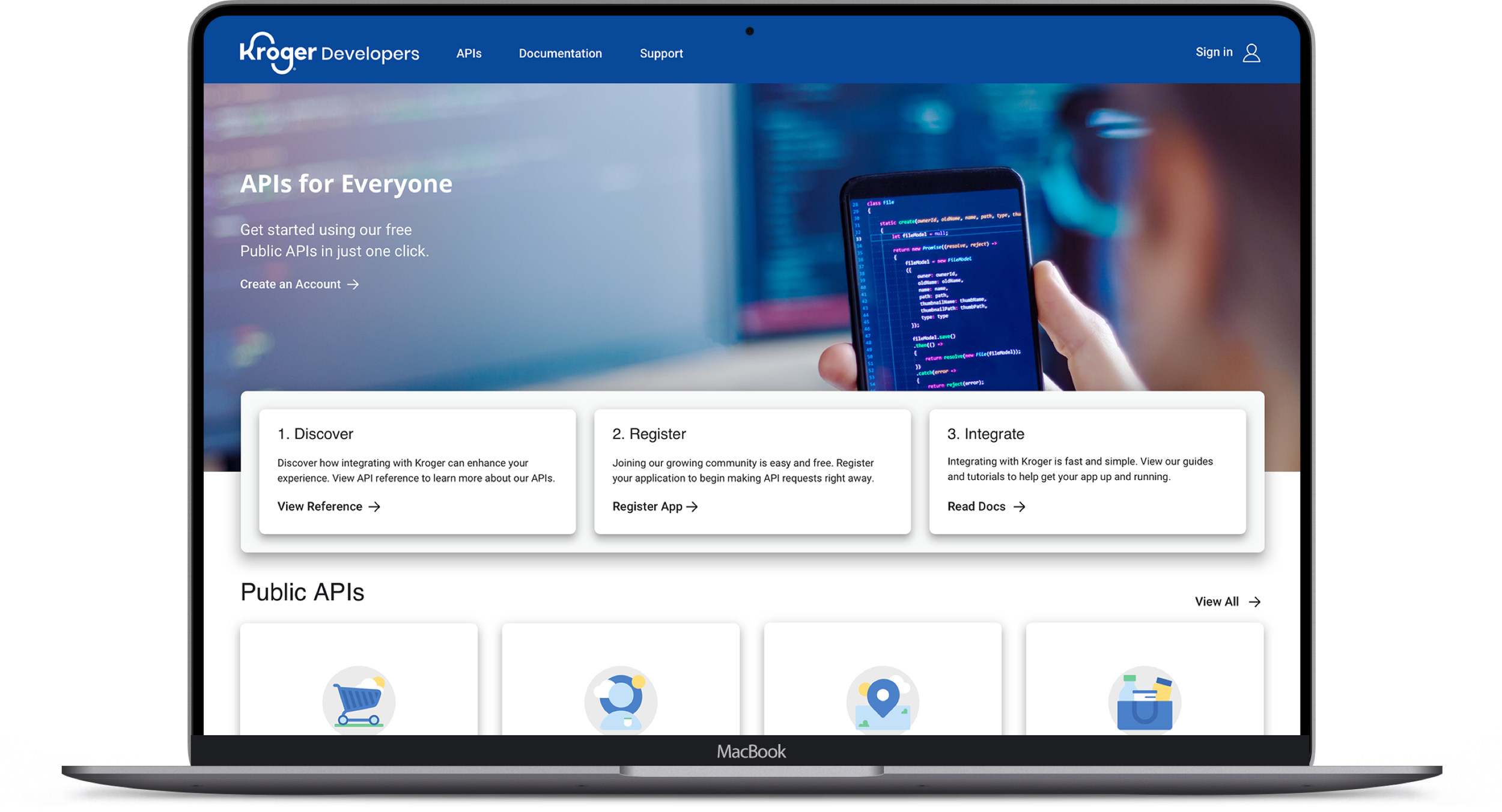 In 2018, Kroger Technology and Digital launched Kroger Developers, an API portal designed to accelerate Kroger's digital transformation. This platform serves as a crucial bridge between API providers and consumers, empowering developers to build secure, customer-centric solutions while advancing Kroger's API-first strategy.
